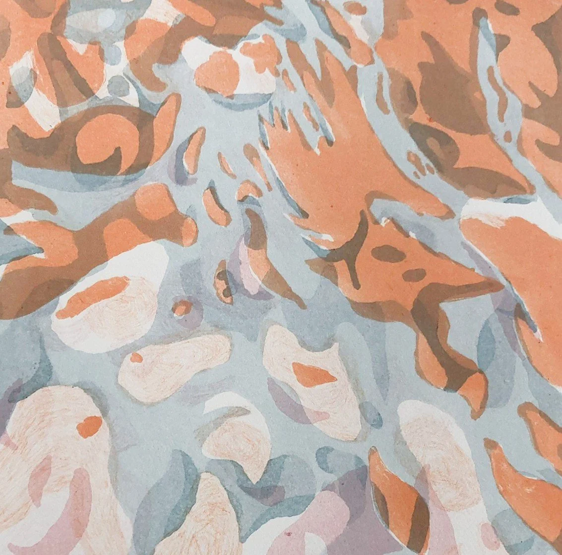 I printed multiple layers on top of each other, in various degrees of transparency, trying to create a delicate illustration resonating the feeling and lightness of the original watercolour sketches.